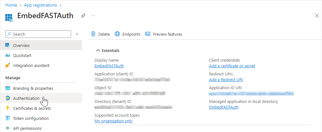 3. Select **Authentication** (under Manage) from the left pane.&#x20;
