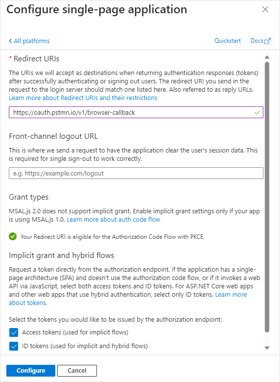 3. Under the **Implicit grant and hybrid flows** section, ensure these options are selected: