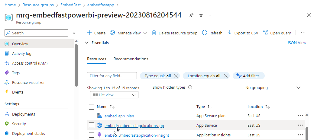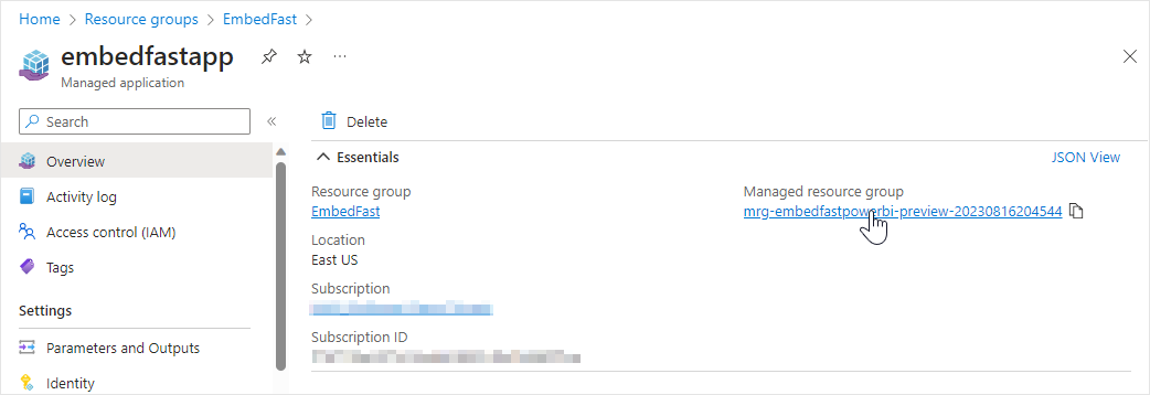 4. Select **Managed resource group**.