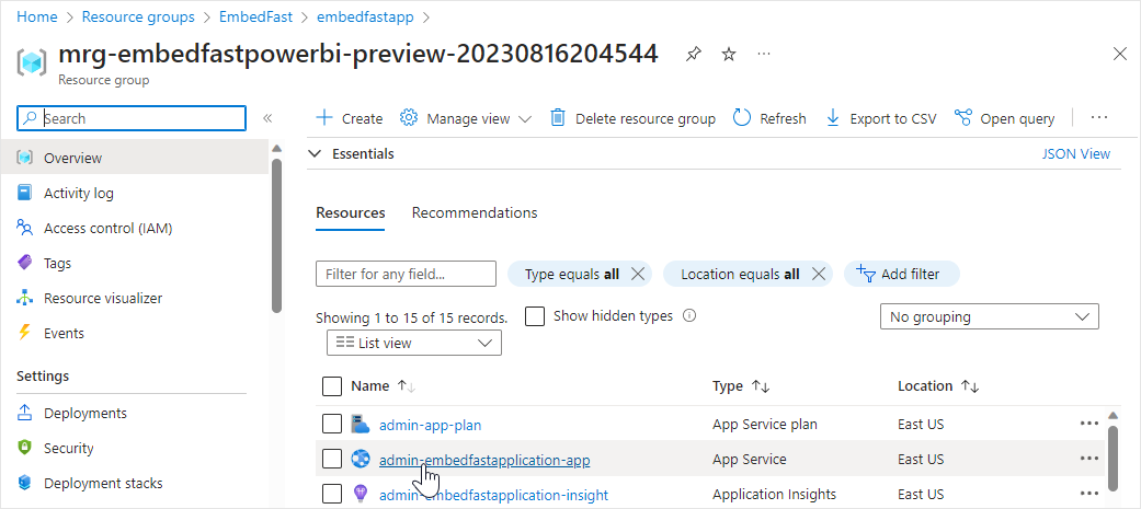 <div data-gb-custom-block data-tag="hint" data-style="info" class="hint hint-info"><p><strong>Note</strong>: The format for the name of the admin web app for will be "<strong>admin-nameoftheapp-app</strong>", where <strong>nameoftheapp</strong> is based on the app name selected in Azure (for automatic deployment) or in the PowerShell terminal (for manual deployment).</p></div>