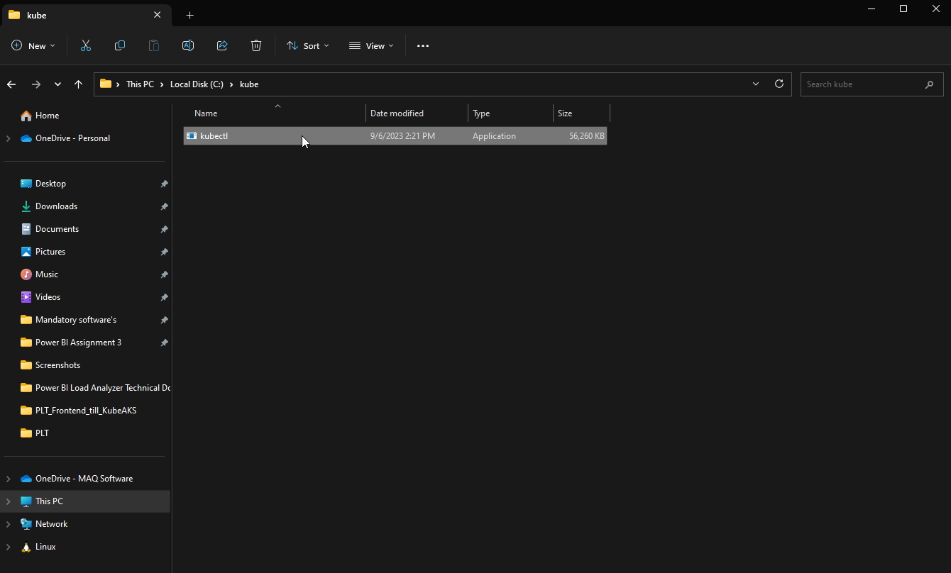 2. Create a new folder in the C drive. Name it "**kube"** and paste the kubectl.exe file inside it.
