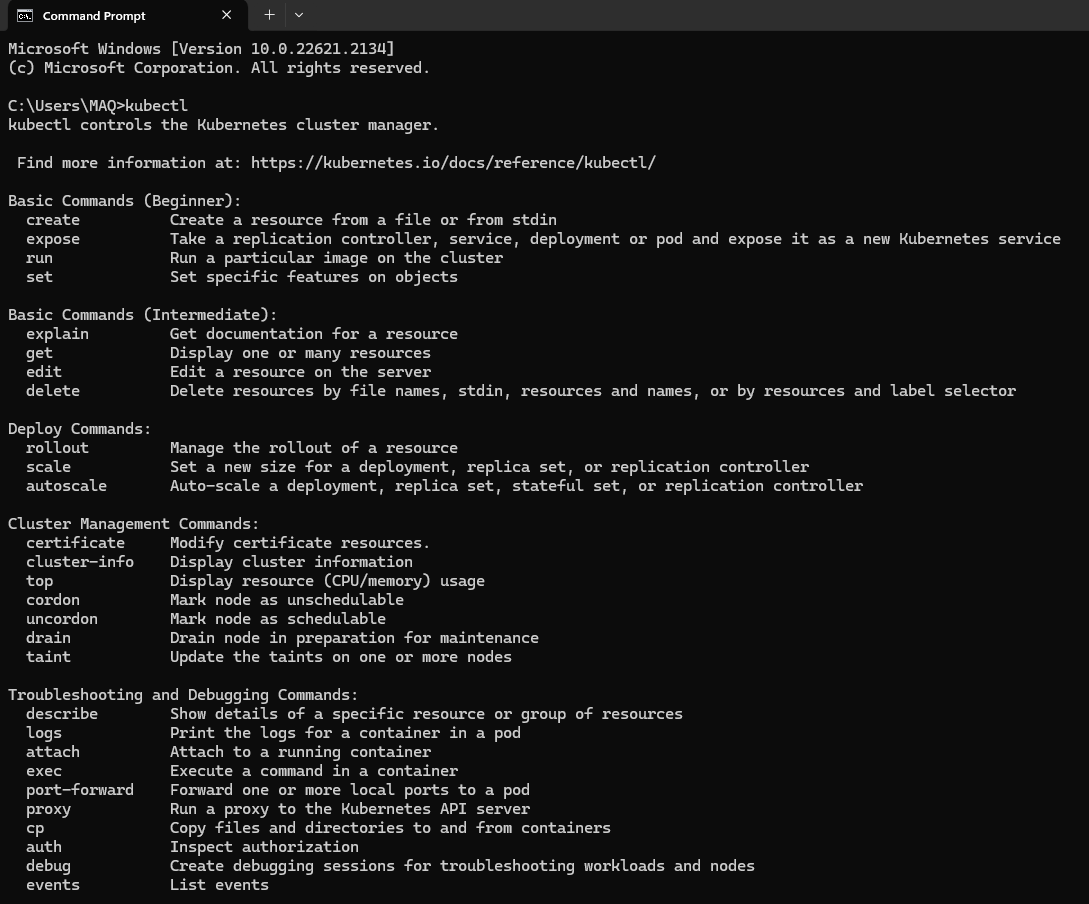 4. If you see the screen shown in the image below, you've successfully installed kubectl on your machine.